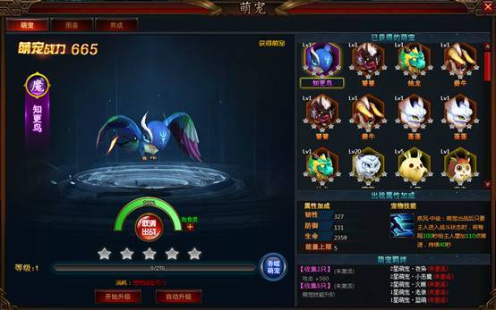 2、 宠物升星后,对应宠物图鉴可以升级,宠物图鉴升级可以额外增加人物角色战斗力。